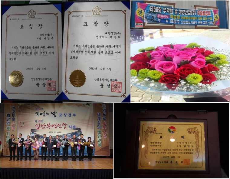 2013년 제50회 무역의날을 맞이하여 무역발전에 이바지한 공로를 인정하여 각 부문 시상이 있었습니다.